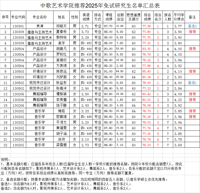 推荐优秀应届本科毕业生免试攻读研究生遴选细则》,学院组织了2025年优秀应届毕业生免试攻读研究生遴选推荐工作。经学生报名、资格审查、综合评定和学院推免生遴选工作小组审查通过,夏春秋等7名学生为拟推荐对象,张益彤等2名学生为拟备选对象,现予以公示。