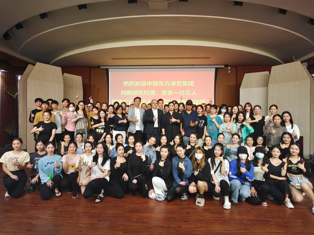会上,刘鹏介绍了中国东方演艺集团有限公司的历史以及发展方向,并肯定集团在国家演艺事业中所取的辉煌成就,特别是介绍今年在全国各地火热巡演的优秀作品《只此青绿》的创作过程及演出盛况等内容。才君从舞蹈演员舞台表演角色作出了分析指导,分享作为舞蹈演员的相关经验,并提出舞蹈专业学生需时刻加强基本功训练,打好基础,与师生们就学习舞蹈表演及编创作品方面等内容进行了深入的交流和探讨。