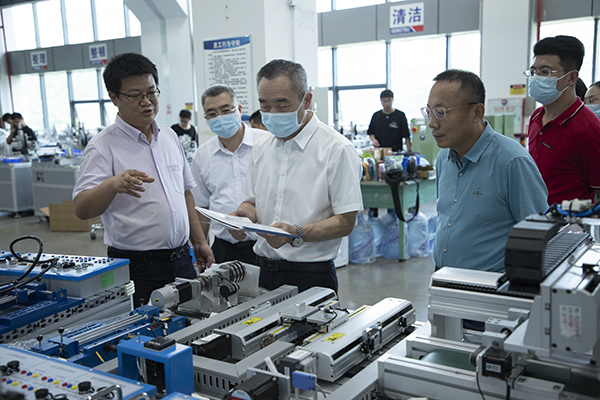 曹俊明一行走访了东莞松山湖生态城市科普馆、广东省智能机器人研究院、松山湖国际创新创业社区、华为欧洲小镇、广东华中科技大学工业技术研究院、固高派动(东莞)智能科技有限公司、速动智能拧紧技术(广东)有限公司、广东中船军民融合研究院等8家企业单位。在与各企业单位交流座谈中,曹俊明着重围绕学习贯彻习近平总书记关于就业工作重要讲话重要指示批示精神,贯彻落实广东省第十三次党代会精神和学校发展定位、学科专业设置、师资队伍建设、人才培养体系、办学特色与优势等方面向各企业介绍了我校近年来的发展情况。他表示,希望借此次访企拓岗促就业活动,推动各企业为学校人才培养、科技创新、人员培训、产学研合作及成果转化、毕业生创业就业等多领域开展更多有实效的合作。