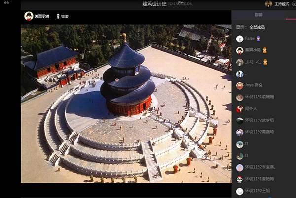 尹艺寰老师的《建筑设计史》通过图文并茂的讲解与学生互动问答的形式,阐述了中国古代建筑的第五立面—“屋顶”,如:庑殿顶、歇山顶、悬山顶、硬山顶、攒尖顶、十字脊等构造与设计样式,使学生了解到这些不同样式的屋顶设计是源自于中国古代的礼仪等级制度在建筑中的体现,并让学生掌握了中国古代屋顶的建筑构造与设计样式特点,课程内容既丰富了同学们的传统文化知识,也为今后学生在相关专业的学习中奠定了基础。