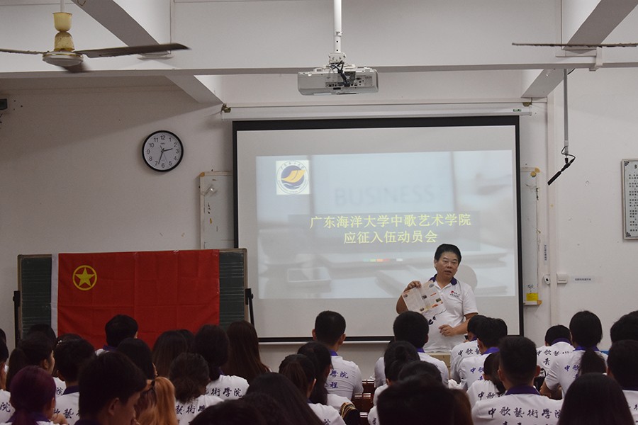 农康在会上做了动员讲话,向同学们介绍了大学生参军的重要意义,对于国家及学校的参军政策进行解读,强调大学生参军是积极响应国家号召,是履行兵役法义务的具体表现,大学生投笔从戎是无尚光荣的,希望大学生积极报名参军到部队为国家奉献自己的青春。农康强调在座的学生骨干要在同学中多做宣传发动,让同学们更多了解和掌握征兵政策,积极报名接受祖国挑选,为国防建设发挥作用。
