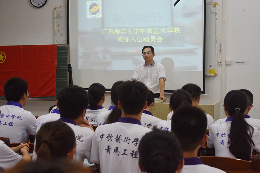 在美术楼302召开学生骨干入伍动员会。学院党委副书记农康、全体辅导员、各班学生代表及学院第四期“青马工程”学员共100余人参加,大会由农康主持。