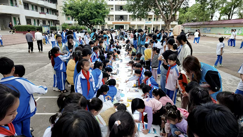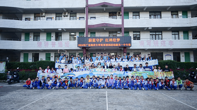 为更好地普及和推行美育教育,将“以文化人”、“以美育人”真正落在实处,让所有乡村学生都享受美育的机会。11月27日,由我校和湖光镇湖光一中共同举办的“蔚蓝守护·红林绘梦”书画进校园在湖光一中举行,我校动漫画