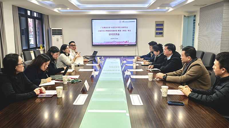 党委书记欧卫军带领影视传媒系副主任、表演专业负责人刘倩,专任教师陈涛、杜春国,青年教师代表王骁赴上海师范大学影视传媒学院调研交流,上海师范大学影视传媒学院党委书记杨康贤、副院长石力月、专业负责人周胜男、肢体戏剧工作坊负责人唐剑威、专任教师王砾玉等接待了一行并组织相关人员召开座谈会。