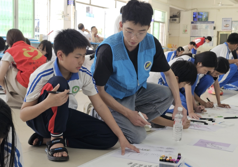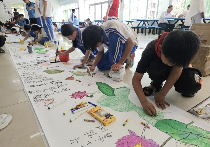 师生党支部走进湛江市麻章区湖光镇第二初级中学,开展“清荷映初心翰墨润校园”百米书画长卷创作活动。