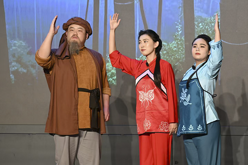 柳萌、黄鹏臻、杨钰滨三同学演唱了红色歌剧《党的女儿》里的片段《天边有颗闪亮的星》,该作品展现了共产党员在长征最困难时心中如星辰般坚定的信仰。作品独特新颖的表现形式和同学们高质量的完成度获得了全体人员的热烈掌声。