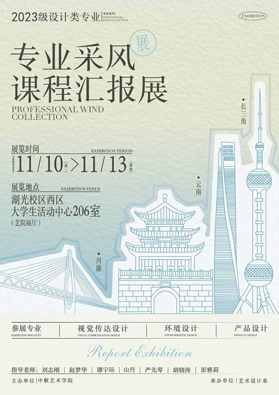艺术设计系《专业采风》课程汇报展在湖光校区西区大学生活动中心206展厅正式展出,为师生呈现一场兼具文化底蕴与专业创意的视觉盛宴,展出时间截止至11月13日。